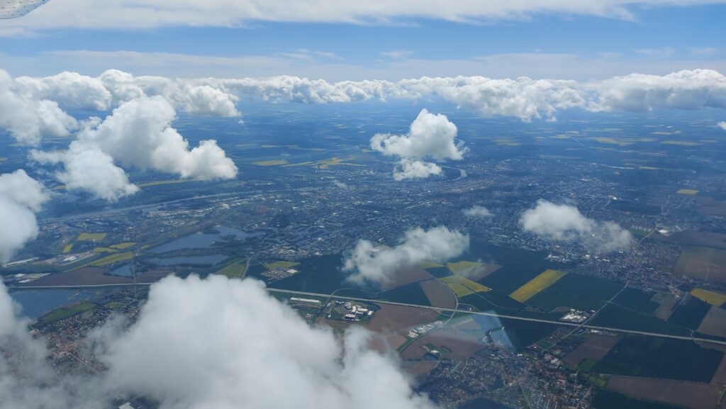 In einem eleganten Bogen wendet der Pilot das Flugzeug und bringt dich über Blankenburg und Quedlinburg zurück zum Flugplatz Ballenstedt.