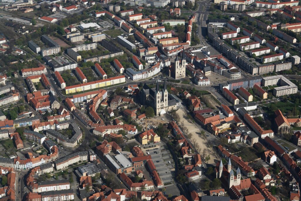 Wir starten in Ballenstedt und fliegen zunächst nach Halberstadt, wo du einen herrlichen Blick auf das Stadtzentrum mit dem berühmten Dom sowie der Liebfrauen- und Martinikirche genießen kannst.